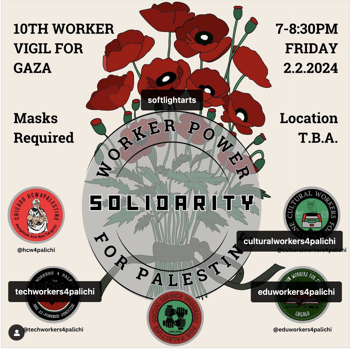 Chicago February 2: 10th Worker Vigil for Palestine (Worker Power for Palestine)